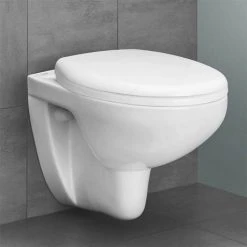 The Grohe Solido Euro Arena WC Pack features a wall hung toilet with a practical, space-saving projection of just 540mm. This all in one solution also includes a steel support frame for secure installation and a cistern to conceal neatly within the wall. The toilet has rimless technology for easy cleaning, while the soft close toilet seat prevents any slamming. A contemporary and ecological dual flush plate controls its powerful Triple Vortex Flush.